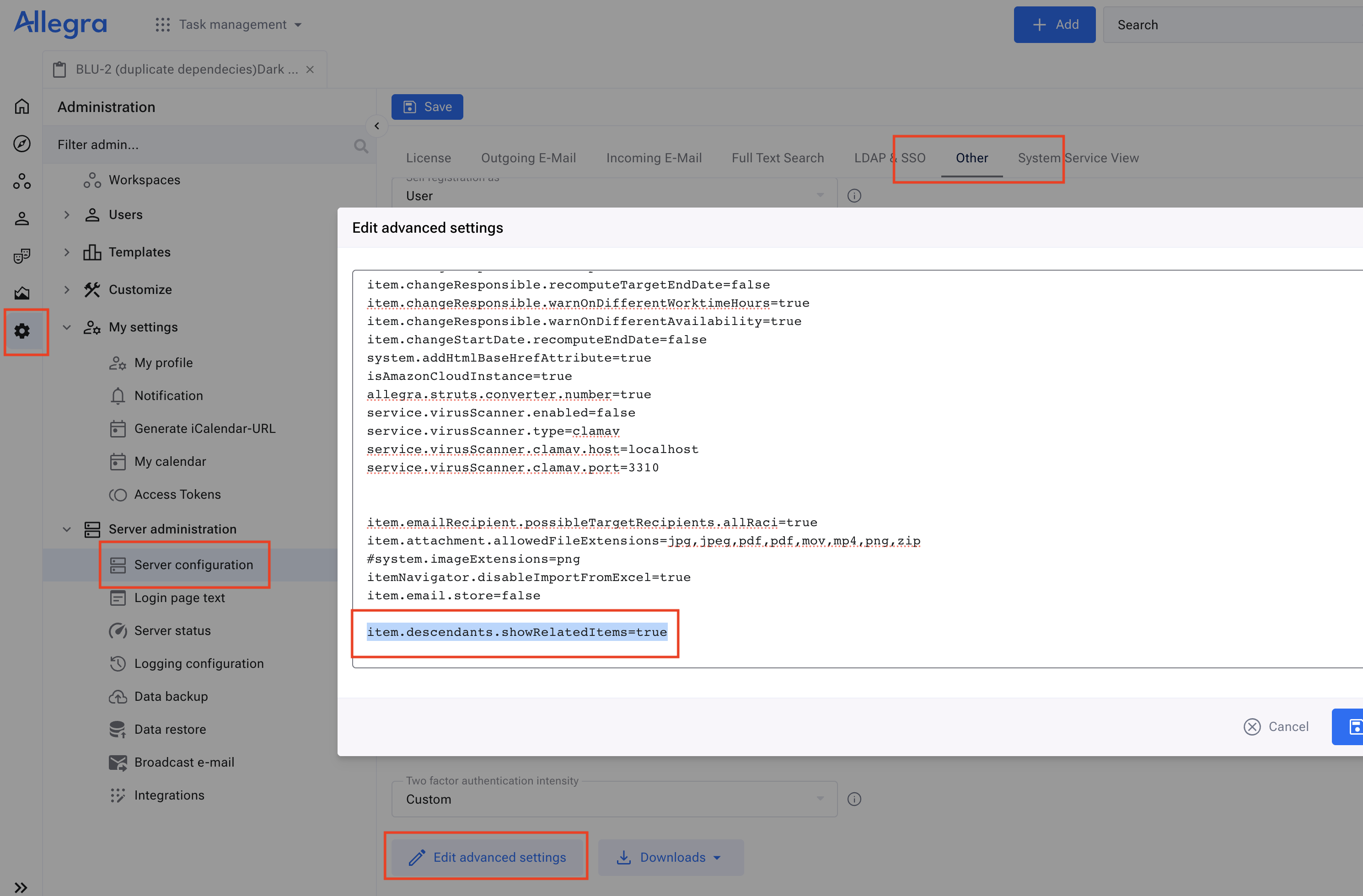 To use this view, please enable the following setting in the server administration under advanced options for all Allegra users: